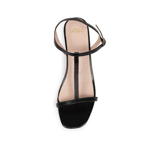 Our bestselling Lindsey sandals, reinvented in a block heel you can run in. This minimal sandal features a classic H-bar strap in black leather with a buckle fastening at the ankle.