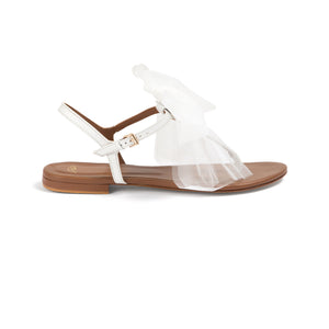 Featuring a statement oversized tulle bow, these simple thong sandals are elegant yet immediately eye-catching.